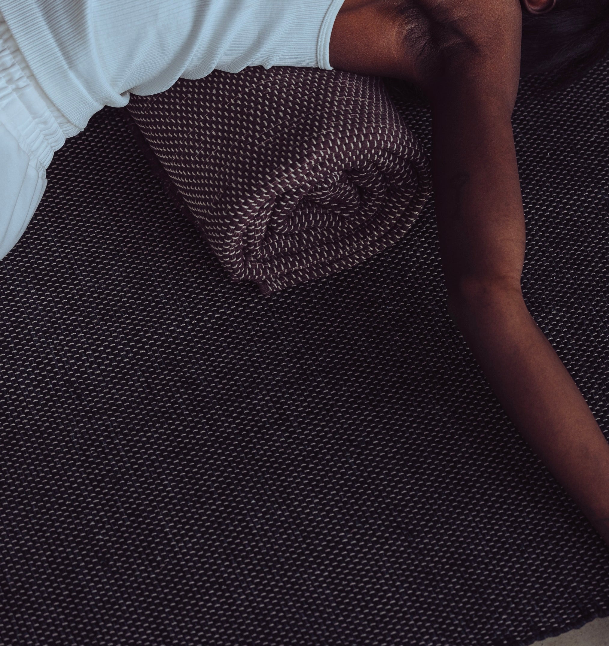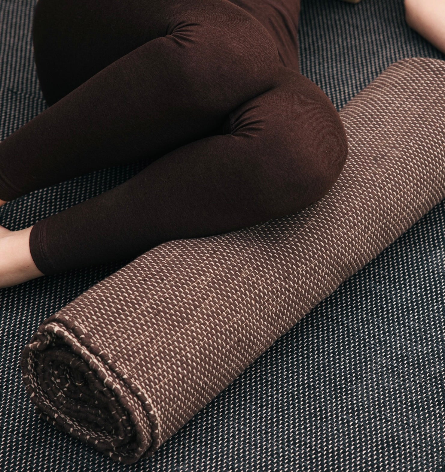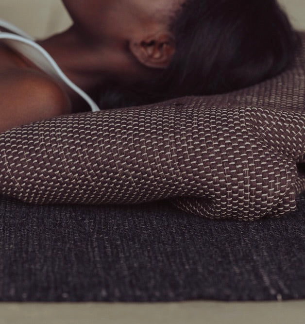 The Rituil Rug: Hand-woven from ultra-soft recycled cotton, this oversized rug is the soul of your practice. Use it as a plush foundation, or fold and roll it to serve as a bolster or meditation seat.